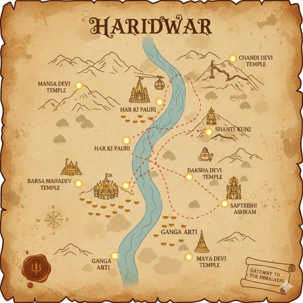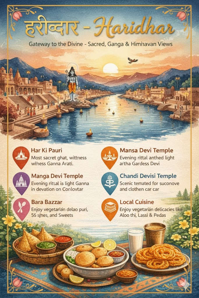Haridwar is one of the holiest cities in India, beautifully situated on the banks of the sacred River Ganga. Known as the “Gateway to the Gods,” it attracts millions of pilgrims and tourists every year. The spiritual heart of the city is Har Ki Pauri, where devotees gather to take a holy dip and attend the mesmerizing Ganga Aarti every evening. The glowing diyas floating on the river create a divine and unforgettable atmosphere. Perched on the hills, Mansa Devi Temple offers panoramic views of the city and is visited by devotees seeking blessings for their wishes. Another sacred hilltop shrine, Chandi Devi Temple, is known for its peaceful surroundings and mythological importance.The bustling Bara Bazaar adds vibrant color to the spiritual town with shops selling religious items, sweets, and souvenirs. Haridwar is also one of the four cities that host the grand Kumbh Mela, one of the largest religious gatherings in the world. The city’s ancient temples, ashrams, and ghats reflect deep-rooted traditions and culture. Early mornings in Haridwar are calm and spiritual, with chants and temple bells filling the air.The flowing Ganga symbolizes purity and devotion for millions of believers. Visitors can experience yoga and meditation sessions in various ashrams across the city. The surrounding hills and natural beauty add charm to the sacred landscape. Festivals are celebrated with great enthusiasm, lighting up the entire city. The blend of spirituality, history, and culture makes Haridwar truly unique. It is not just a pilgrimage destination but also a place of inner peace and reflection. Every corner of the city carries mythological stories and divine energy. Whether visiting for faith, culture, or exploration, Haridwar leaves a lasting The bustling Bara Bazaar adds vibrant color to the spiritual town with shops selling religious items, sweets, and souvenirs impression on every traveler.